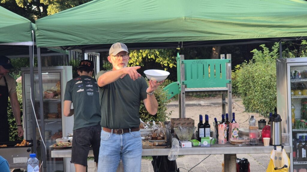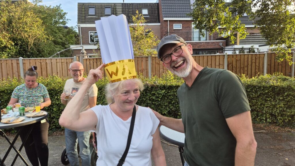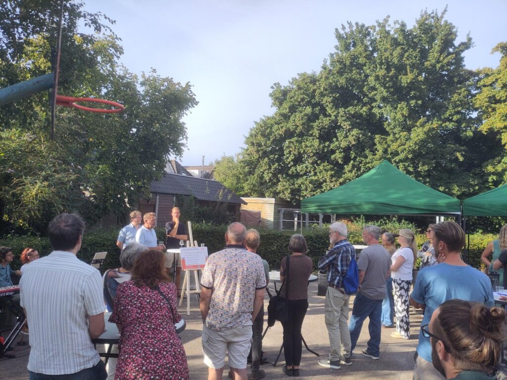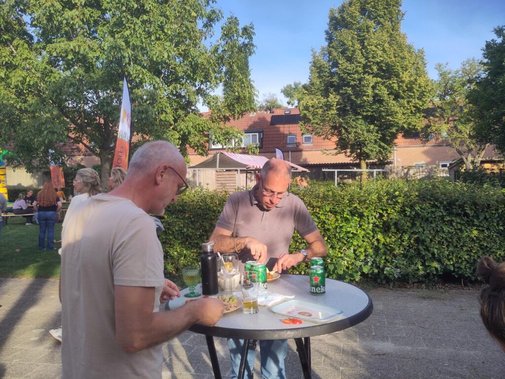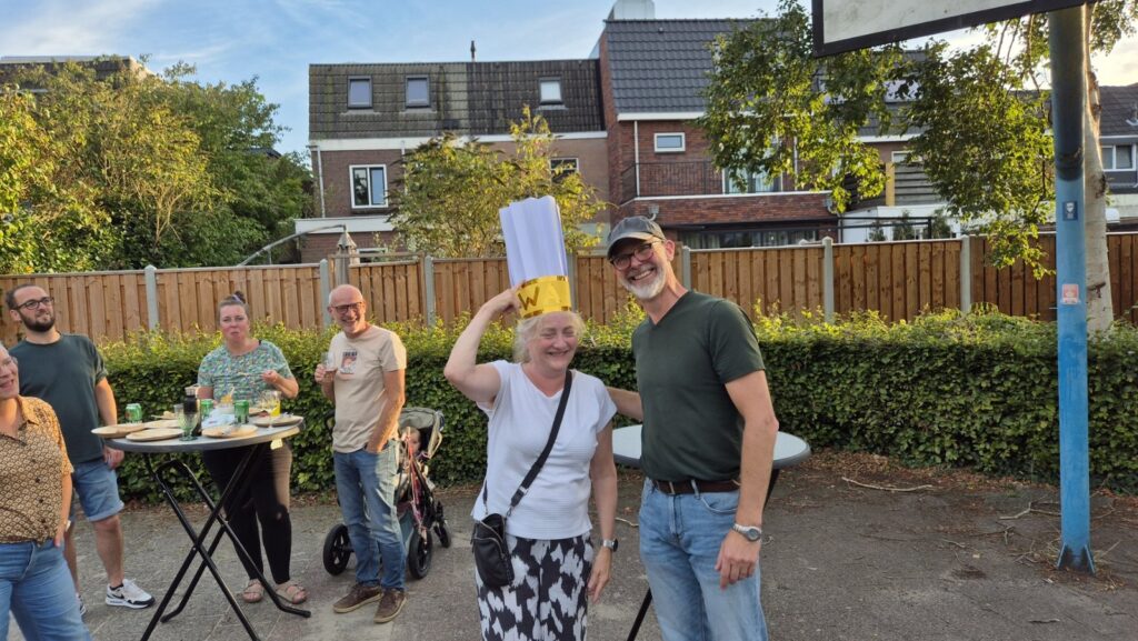Daarna was het tijd voor ontspanning tijdens de buurtbarbecue. Onder het genot van live muziek en een warm zonnetje werden veel vragen gesteld, ervaringen uitgewisseld en plannen besproken. Een bijzonder hoogtepunt was de uitreiking van de Gouden Koksmuts voor de beste salade. Deze traditie leverde opnieuw enthousiaste inzendingen en vrolijke reacties op.